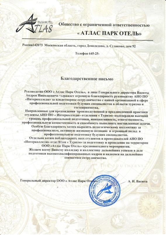 Перед новым годом студенты отделения "Туризм и гостеприимство" провели выездной спектакль «Шиворот-навыворот» в загородной зоне отдыха "Атлас Парк Отель". Руководство гостиничного комплекса направило администрации "Интерколледжа" благодарственное письмо, в котором подробно оценило нашу работу.
