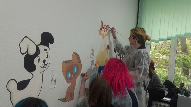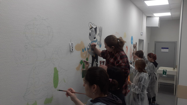 Расширяется география добрых дел студентов ИЭиК и «Интерколледжа»: в воскресенье, 14 мая, наши волонтеры украсили детское отделение амбулатории в поселке с поэтическим названием Лесные Поляны. Любимые персонажи советских мультфильмов будут радовать маленьких пациентов, а также помогут им побороть страх перед посещением лечебного учреждения и преодолеть боязнь медицинских манипуляций.