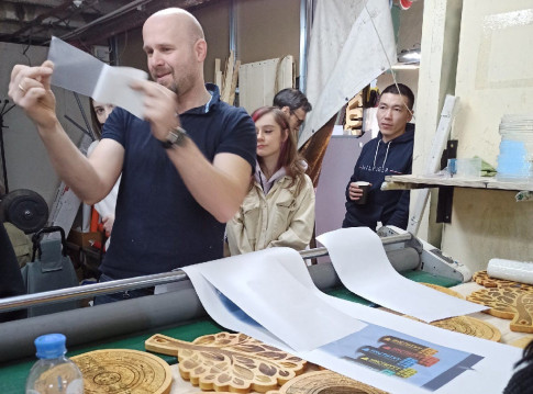 Также наши студенты посетили шелкографическое производство, где прослушали лекцию о нюансах и особенностях этого древнего вида трафаретной печати, о том, где и как применяется сейчас шелкография, какие требования предъявляются к файлам для этого вида печати. Студентам продемонстрировали работу оборудования и даже дали попробовать свои силы в роли мастера-печатника. Собственноручно отпечатанные сувениры ребятам разрешили забрать с собой.