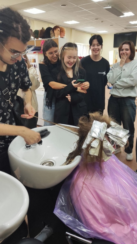 Выпускница отделения парикмахерского искусства 2020 года, а сегодня высококвалифицированный специалист Анастасия Романенко провела мастер-класс по технике окрашивания AirTouch и «Шатуш». Перенимали опыт учащиеся групп «Интерколледжа»: ТПИ-211, ТПИ-213, ТПИ-222, ТПИ-221, ПИК-233.