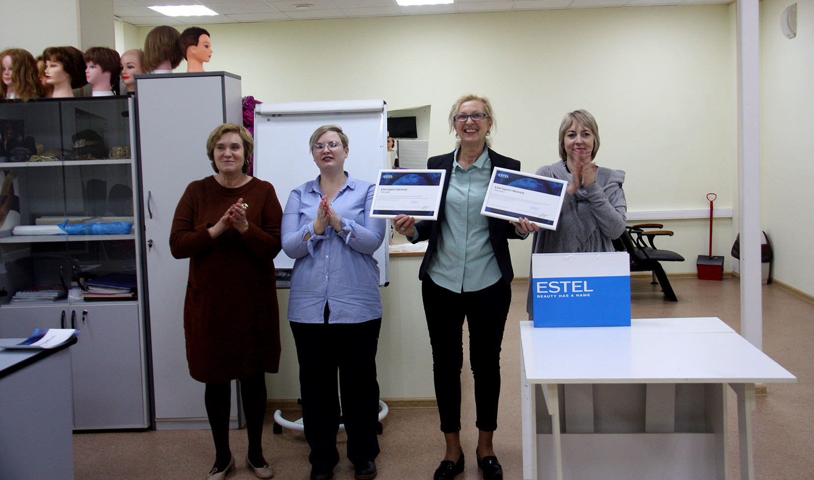 На отделении Парикмахерского искусства прошло вручение сертификатов ESTEL. После прохождения всех ступеней ESTEL PROFESSIONAL девочки прошли письменный тест и те, кто его прошел получили сертификаты подтверждающие прохождение курса.
