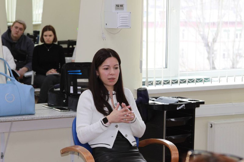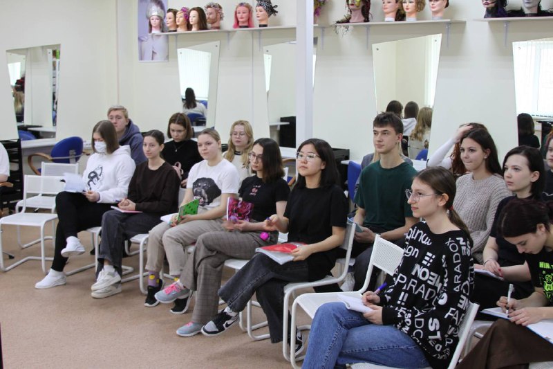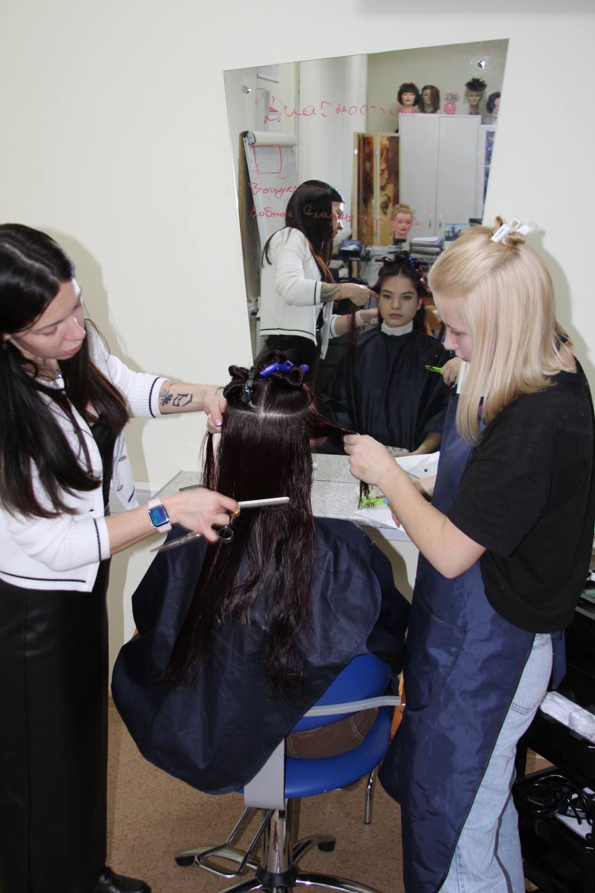 С нашими студентами авторитетная гостья поделилась авторской техникой современных стрижек. Сразу же в аудитории воцарилась аура творчества и вдохновения. Замечательная атмосфера помогла ребятам справиться с отработкой на моделях на отлично!