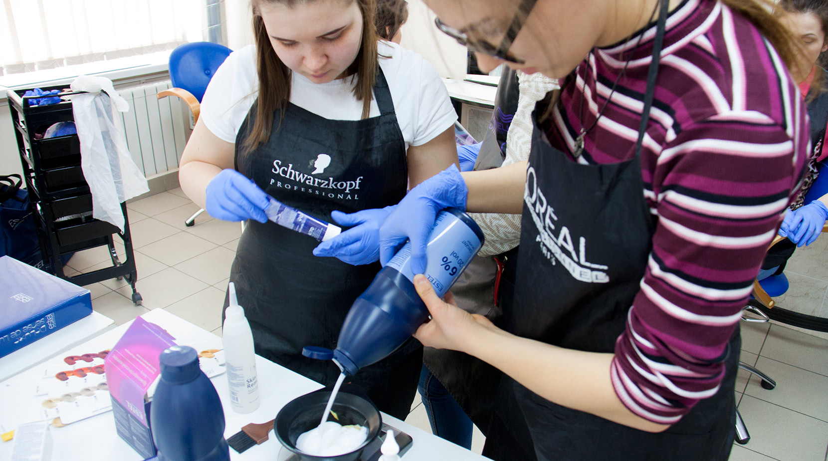Студенты 2-го курса отделения парикмахерского искусства отработали свои практические навыки по колористике на первых двух ступенях семинара ESTEL "лаборатория цвета" и "управление цветом – седина". Сотрудничество с Estel дает возможность расширить кругозор знаний в области колористики. Компания Estel помогает в приобретении дополнительного практического опыта, а так же предоставляет все расходные материалы.