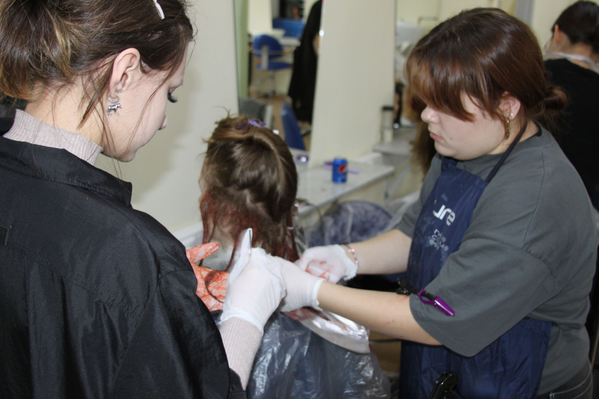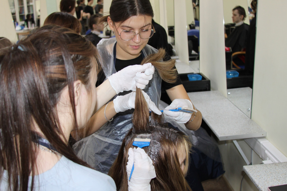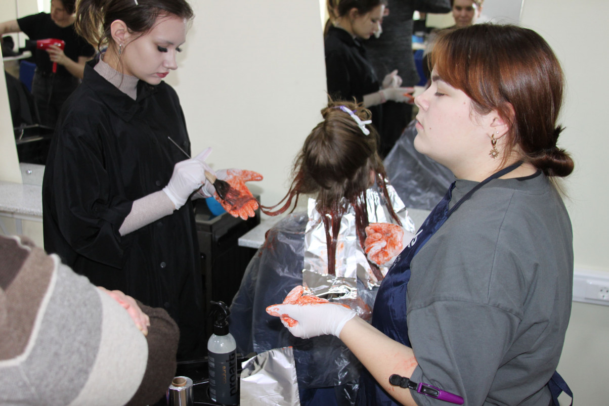 Наши студенты овладели тонкостями взаимодействия с премиальной косметикой для окрашивания "Эстельер", отработав приобретенные навыки на моделях.