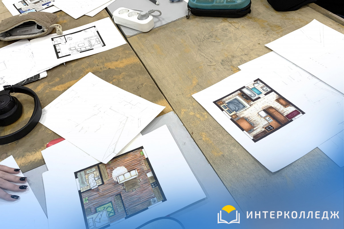 На этом этапе важно учитывать не только эстетическую составляющую, но и практичность. Студенты учатся избегать узких проходов, продумывать системы хранения и обеспечивать достаточное естественное освещение.