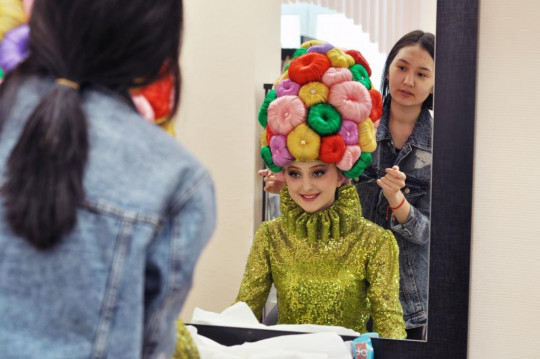 Первое место по праву досталось Султангалеевой Регине и ее модели Магомедовой Мадине, студентки 3го курса отделения парикмахерского искусства Интерколлледжа. Работа представленная на Moscow fashion look 2017 это выпускной диплом Регины. Она олицетворяет приход весны. Отсюда такое буйство ярких красок и форм.