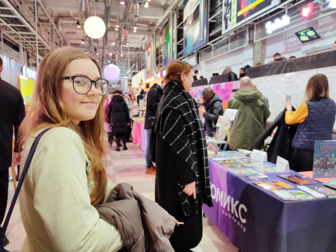 У наших студентов отделения «Дизайн» была уникальная возможность в живую пообщаться с авторами и издателями комиксов, услышать советы о том, как создавать графические романы, на что стоит обратить внимание начинающим комиксистам. В рамках открытого микрофона, известные художники и дизайнеры делились секретами профессионального мастерства, рассказывали о том, как правильно построить работу над своим комиксом, как эффективно взаимодействовать с издательствами и как лучше продвигать свое творчество.