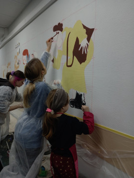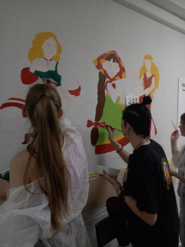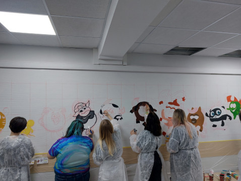 Это уже второй опыт волонтерской работы наших студентов по созданию интерьерных муралов для детских оздоровительных учреждений. В этот раз творческий десант составил 48 студентов под руководством педагогов Банка Ивана Николаевича, преподавателя кафедры дизайна ИЭиК и Семенихиной Валентины Александровны, преподавателя дисциплин дизайна «Интерколледжа».