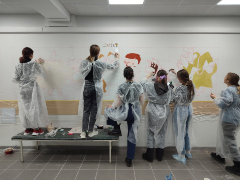 В воскресенье, 9 апреля, студенты отделения дизайна «Интерколледжа» и кафедры дизайна ИЭиК посетили подмосковный город Ивантеевку, где в детской поликлинике украсили стены персонажами советской и российской анимации.