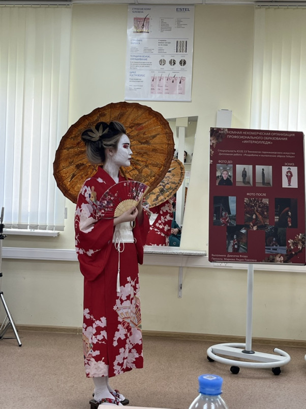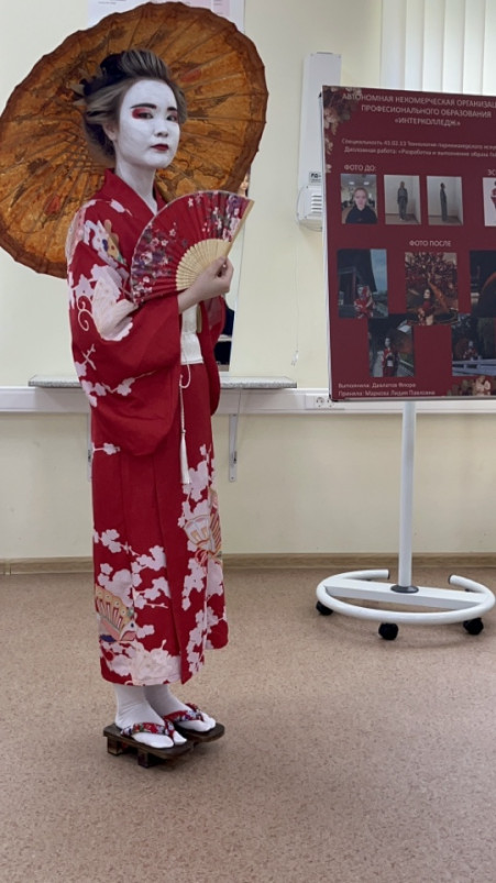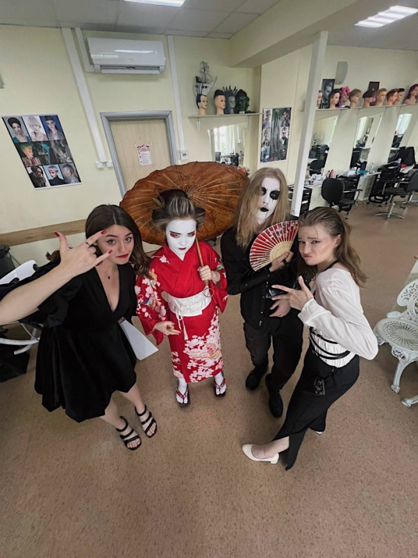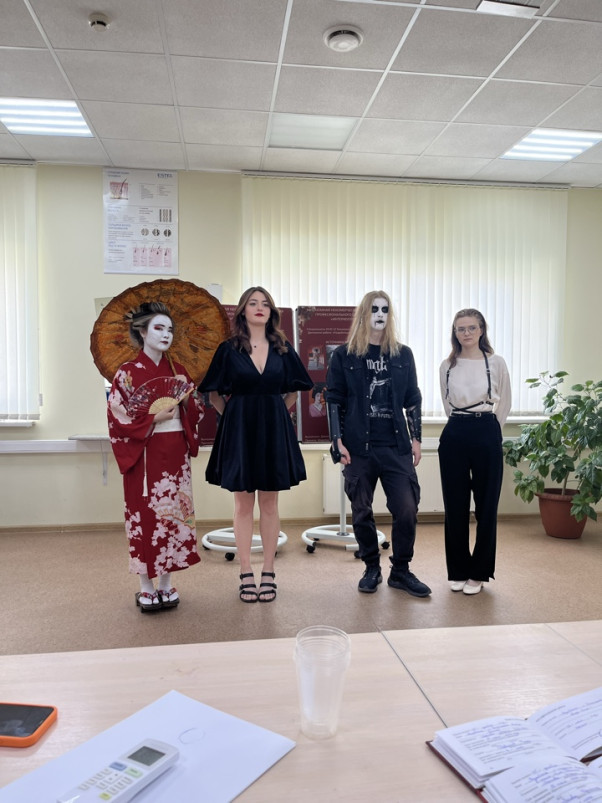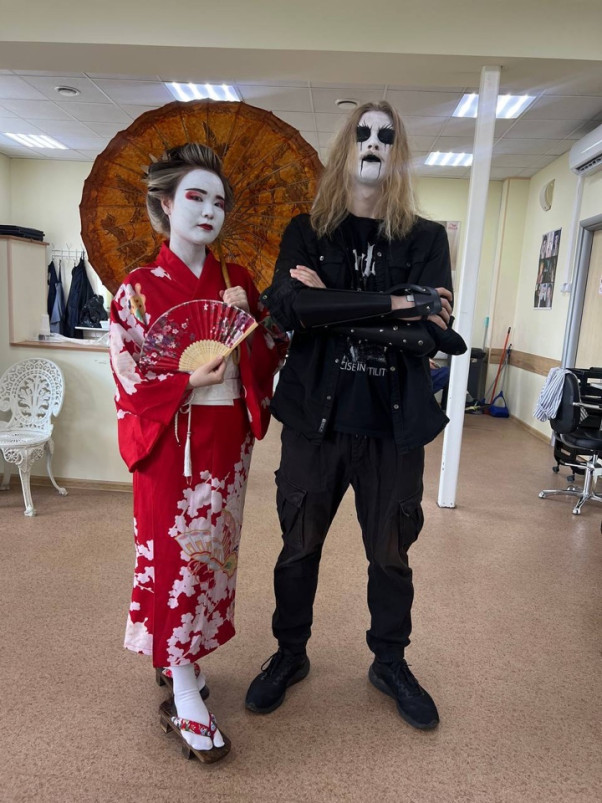 Флора Давлатова и Татьяна Щербакова (группа ТПИ-212) представили удивительные проекты: образ гейши и мужской образ в стилевом направлении "Блэк-металл".