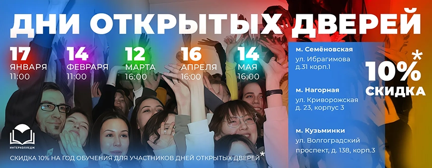 Участникам Дней открытых дверей предоставляется скидка 10% на год обучения.