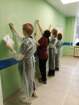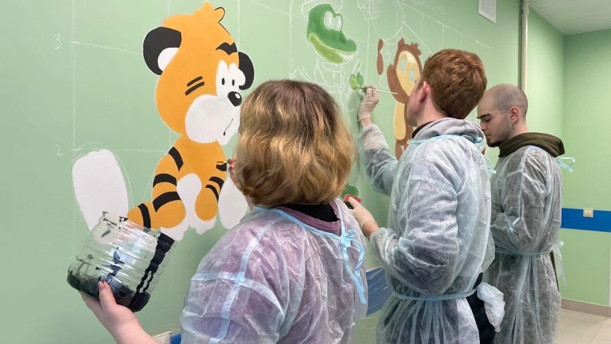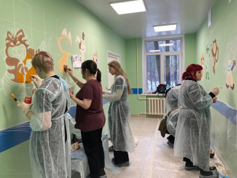 К нам обратились сотрудники Московской областной больницы из Пушкино с просьбой украсить стены в детском отделении амбулатории №2. На просьбу откликнулись студенты отделения дизайна «Интерколледжа» и кафедры дизайна Института экономики и культуры. В воскресный день, 12 марта, не ради оценок, а по зову сердца наши студенты украсили интерьер детского отделения известными и всеми любимыми персонажами советских мультфильмов. Художественное оформление детских заведений – очень ответственный и трудоемкый процесс. Впервые столкнувшись с таким вызовом, под руководством доцента кафедры Банка Ивана Николаевича и преподавателя дисциплин дизайна Семенихиной Валентины Александровны ребята с честью справились с задачей, а руководство больницы, медперсонал и пациенты отметили высокий художественный уровень и профессиональное выполнение работы, особенный восторг выразили юные посетители амбулатории. Кроме того, городское телевидение сняло репортаж с интервью участников проекта.