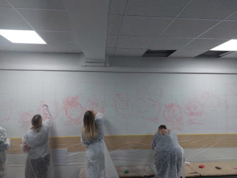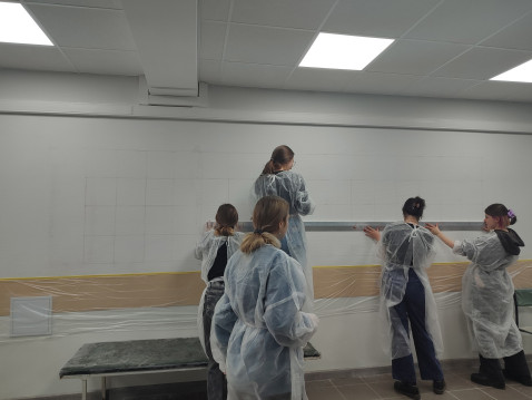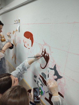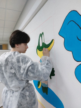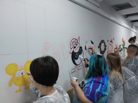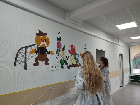 Это уже второй опыт волонтерской работы наших студентов по созданию интерьерных муралов для детских оздоровительных учреждений. В этот раз творческий десант составил 48 студентов под руководством педагогов Банка Ивана Николаевича, преподавателя кафедры дизайна ИЭиК и Семенихиной Валентины Александровны, преподавателя дисциплин дизайна «Интерколледжа».