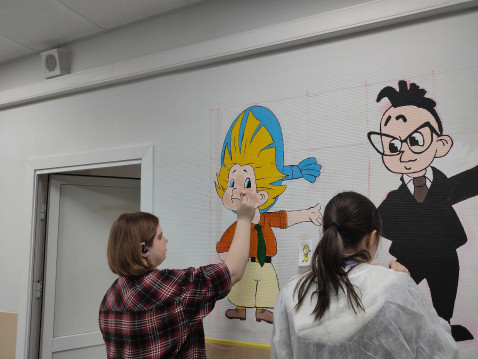 В воскресенье, 9 апреля, студенты отделения дизайна «Интерколледжа» и кафедры дизайна ИЭиК посетили подмосковный город Ивантеевку, где в детской поликлинике украсили стены персонажами советской и российской анимации.