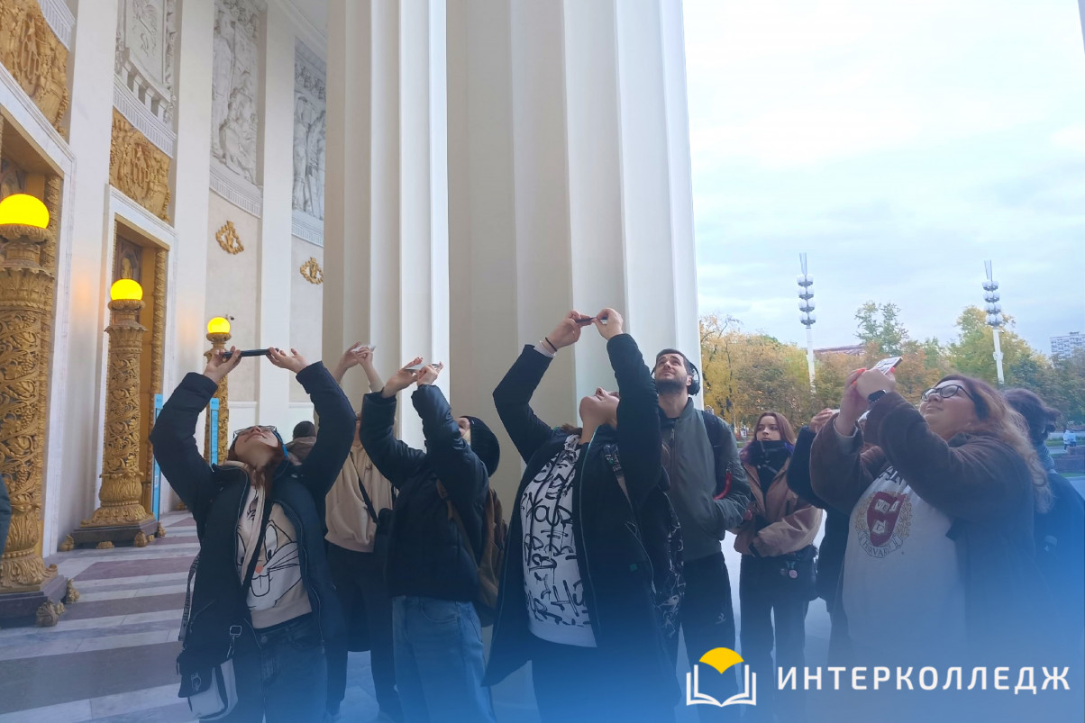 23 октября студенты «Интерколледжа» 3 курса отделения «Дизайн» отправились на выездное занятие на ВДНХ, которая стала творческой лабораторией для студентов-дизайнеров. Выездное практическое занятие прошло под руководством преподавателя, Ищенко Таисы Олеговны. Будущие дизайнеры внимательно анализировали лепнину, мозаику, кованые элементы и резьбу на зданиях разных эпох. Они исследовали, как классические узоры переплетаются с советской символикой, а растительные мотивы соседствуют с геометрическими абстракциями. Студенты делали многочисленные зарисовки, фотографировали детали, чтобы в дальнейшем использовать собранные эскизы и впечатления в своих проектах.