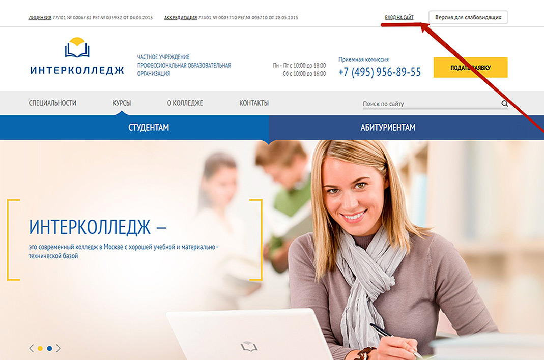 - В верхней части сайта нажимаем на ссылку «Вход на сайт».